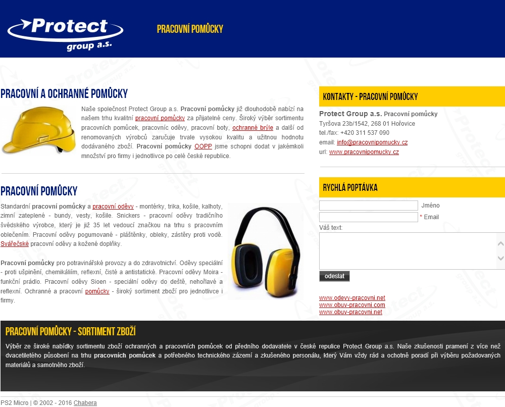 Pracovní a ochranné pomůcky, podpůrný projekt pro lepší propagaci našeho sortimentu a katalogu zboží.