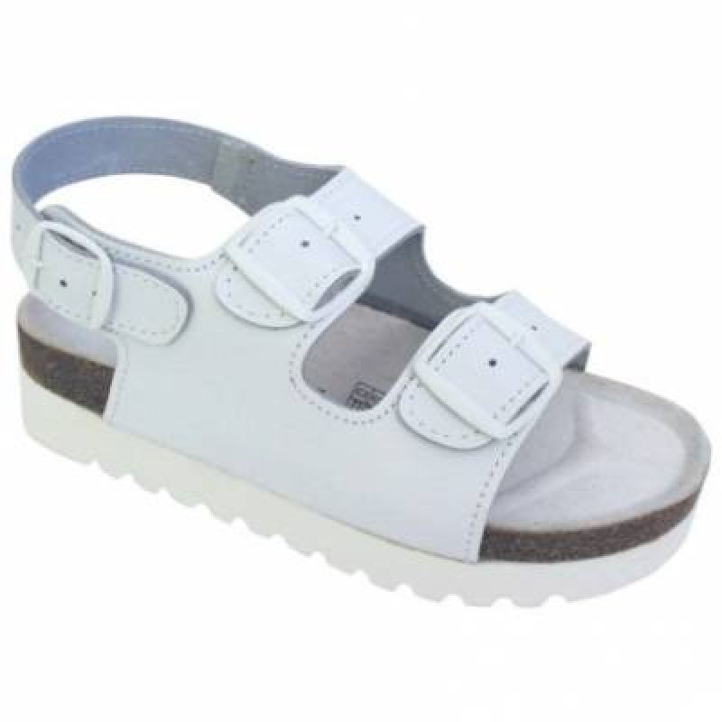 Sandály bílé na klínku zdravotní, korek/kůže (34-42)
