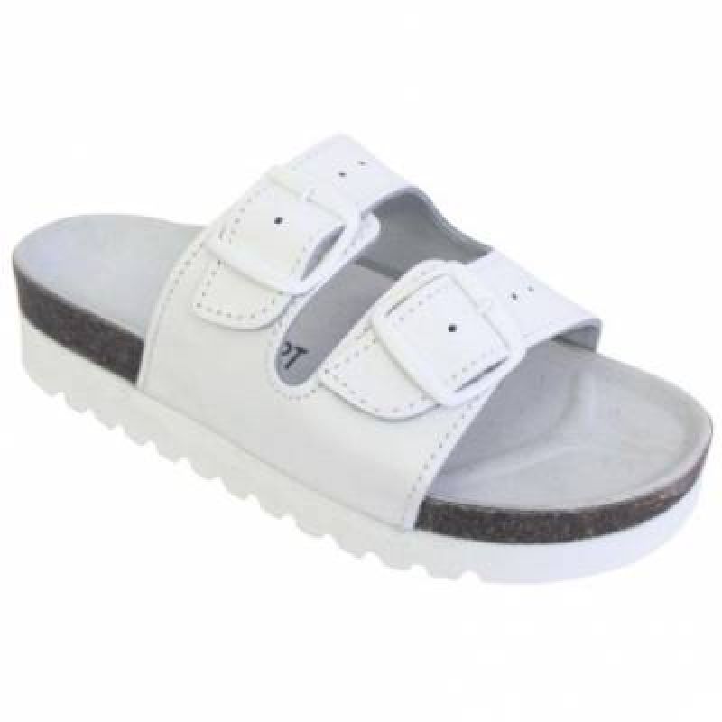 Pantofle bílé na klínku zdravotní, korek/kůže (34-42)