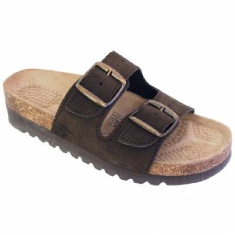 Pantofle hnědé zdravotní, korek/kůže (34-42)