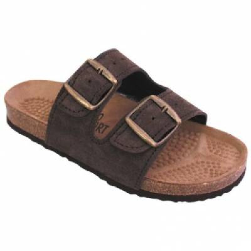 Pantofle hnědé na klínku zdravotní, korek/kůže (34-47)
