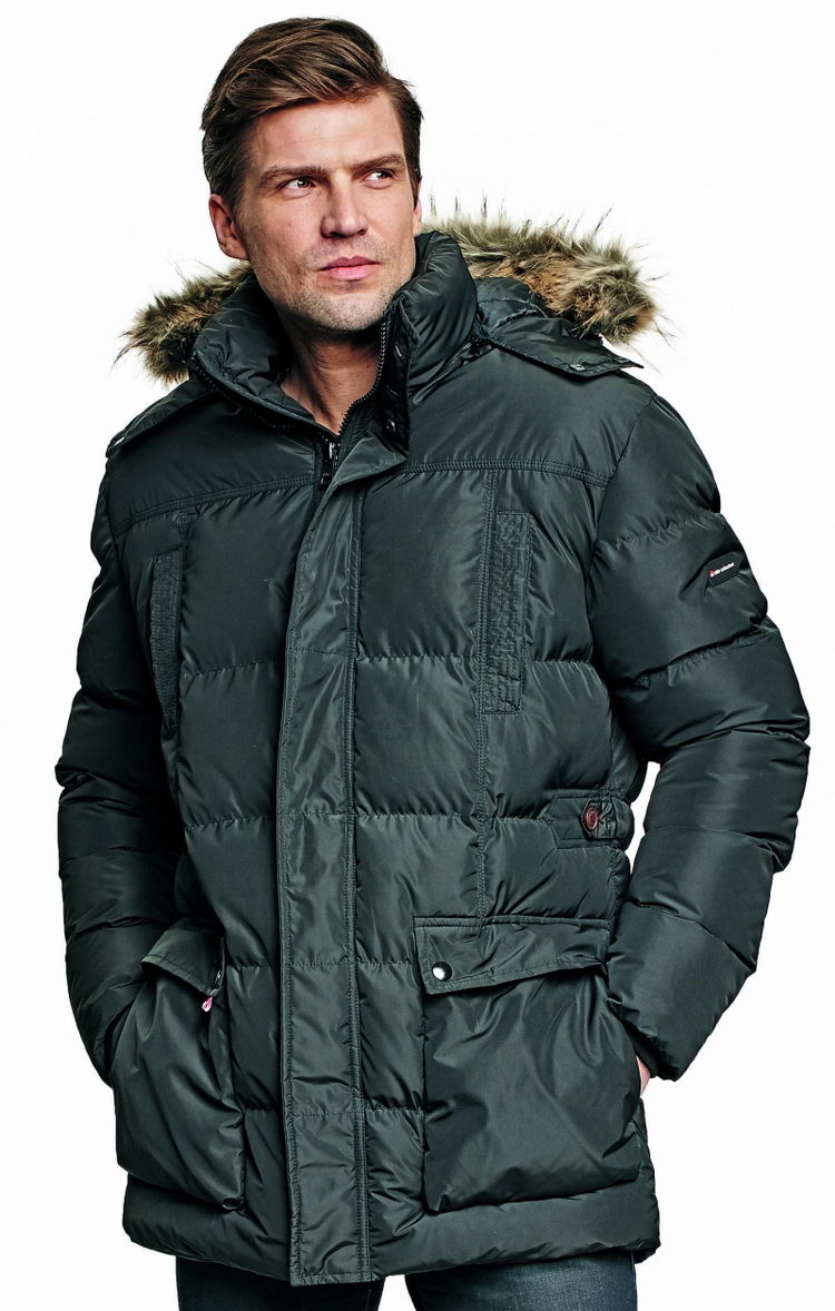 pánská zimní parka v prodloužené délce s odnímatelnou kapucí lemovanou kožichem, celopropínací na zip, 2 postranní multifunkční kapsy, 2 náprsní kapsy na druky, 1 vnitřní kapsa na mobil, zip krytý légou, nastavitelná šírka v pase díky poutku na druky, uvnitř rukávu manžeta z elastického žebrového úpletu