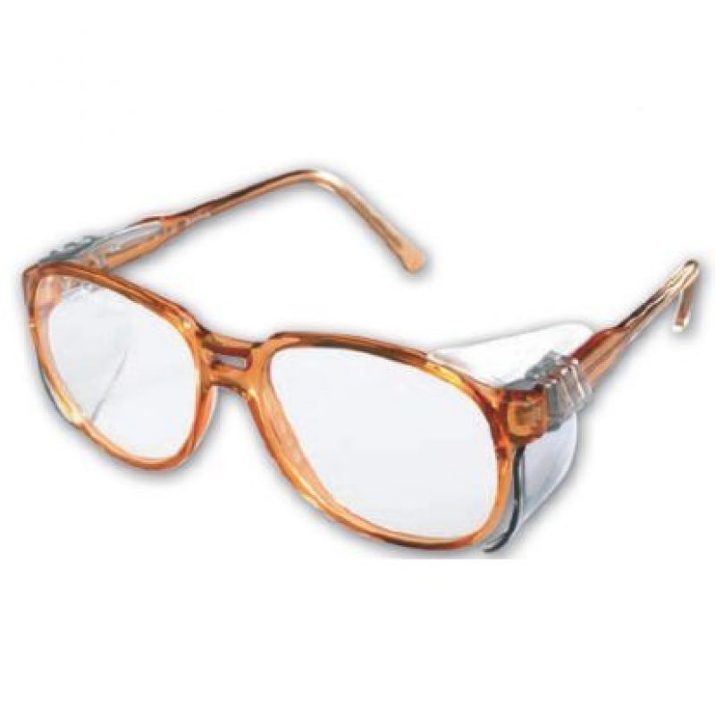 Ochranné brýle, bezbarvý zorník, průhledný boční kryt, obroučky vhodné k osazení bezpečnostními dioptrickými skly.