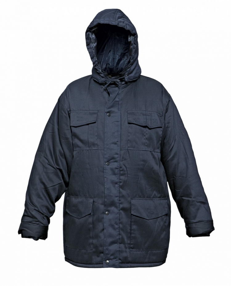 Zimní zateplená celopropínací bunda s odepínatelnou kapucí, překrytým zipem. • Dvě velké přední kapsy a dvě menší náprsní kapsy na suchý zip.