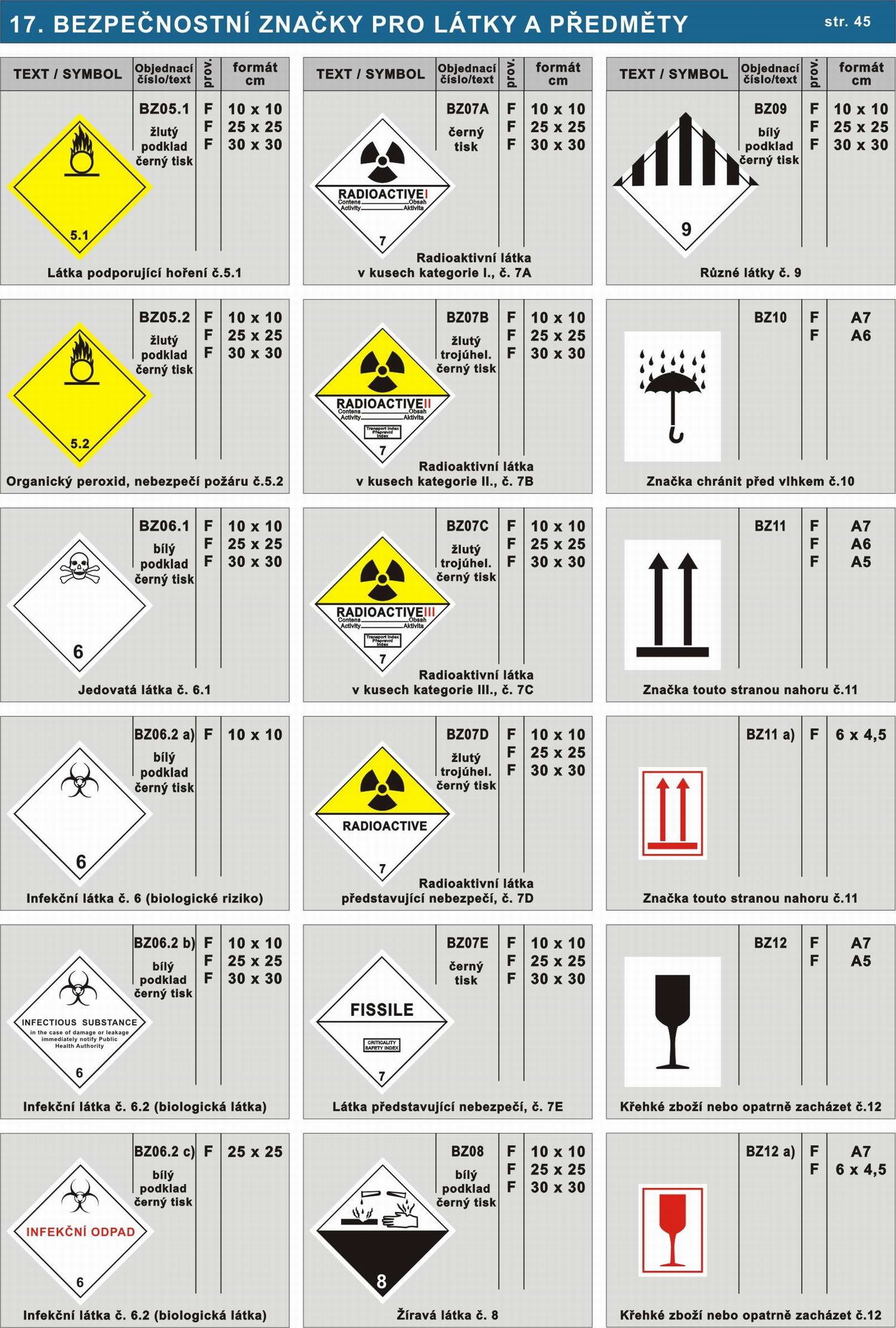 | Název zboží | Bezpečnostní značky pro látky a předměty |