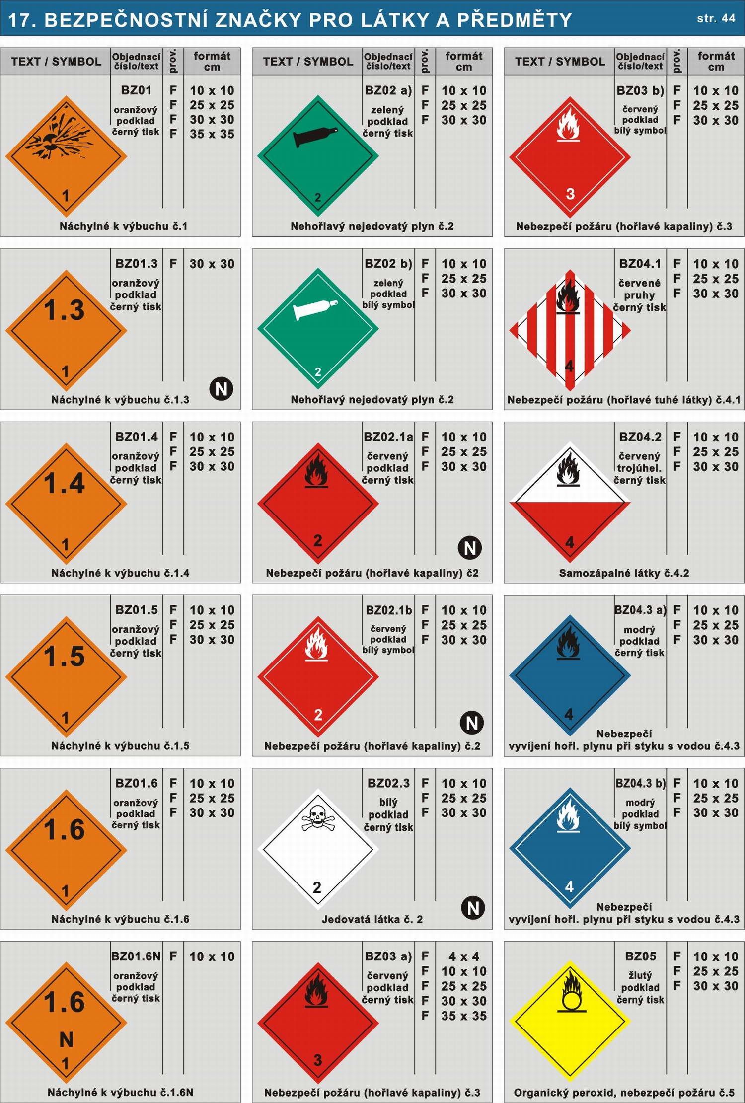 | Název zboží | Bezpečnostní značky pro látky a předměty |