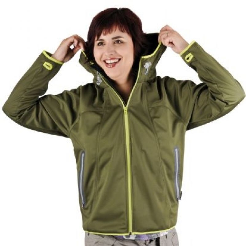 Dámská bunda s kapucí s voděodolnými zipy, voděodolná 5000 mm a prodyšná 800 g/m2/24h.