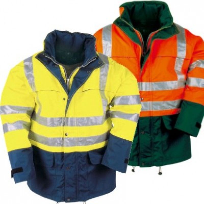 Bunda ze signálního materiálu SIOPOR Extra, kapuce v límci s podšívkou, zapínání na zip překrytý lištou zapínatelnou na druky, 2 kapsy na hrudi, v podpaží ventilace, 2 spodní kapsy, přelepené švy, vnitřní kapsa, kapsa na mobil, EN343, třída 3-2, EN 471.