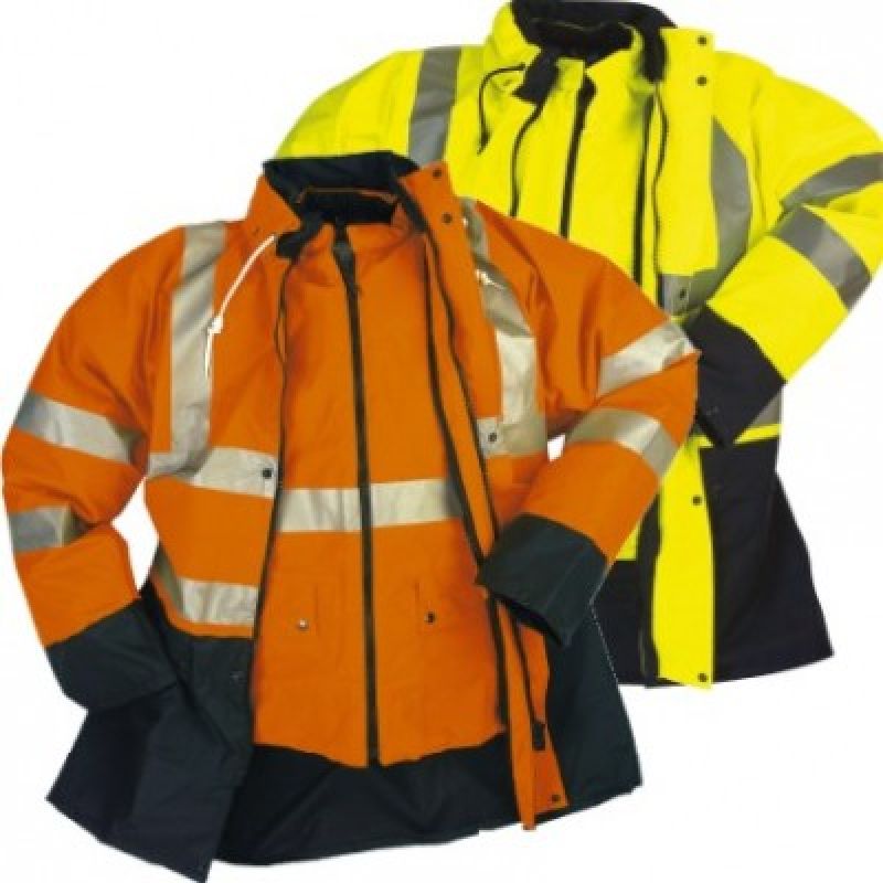 Bunda s odepínací vestou, materiál FLEXOTHANE Classic, kapuce v límci, zatavené švy, pletená manžeta v rukávech proti větru, zapínání na zip překrytý lištou zapínatelnou na druky, 2 kapsy, odepínatelná vesta má prošívanou podšívku, EN 343, třída 3-2, EN 471.