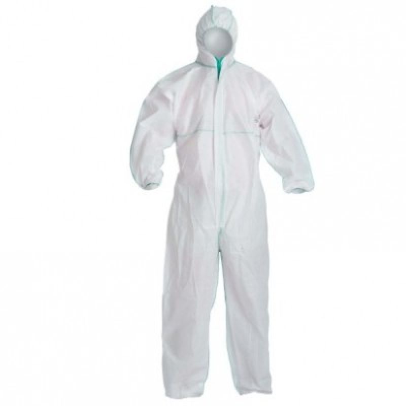 Ochranný oblek s kapucí z netkaného polypropylenu. Ochranná klopa na zipu, rukávy a nohavice stažené gumičkou. Odolává některým chemikáliím, kategorie CE III typ 5 a 6, ochrana proti průniku radioaktivních částic. Antistatický. Velikost M, L, XL, XXL.