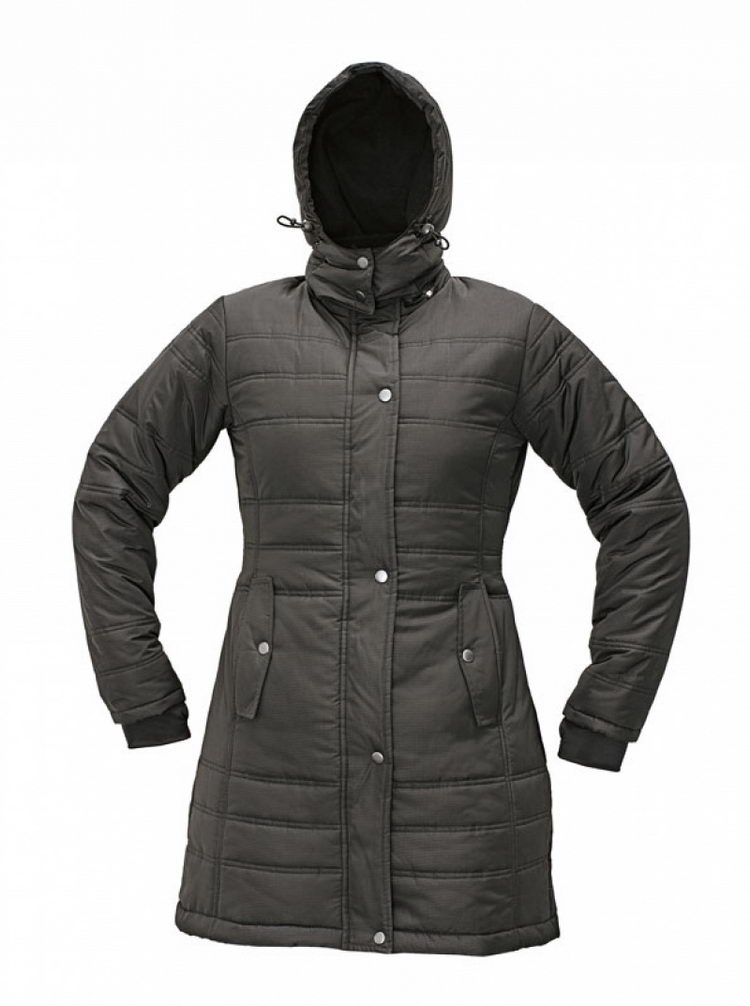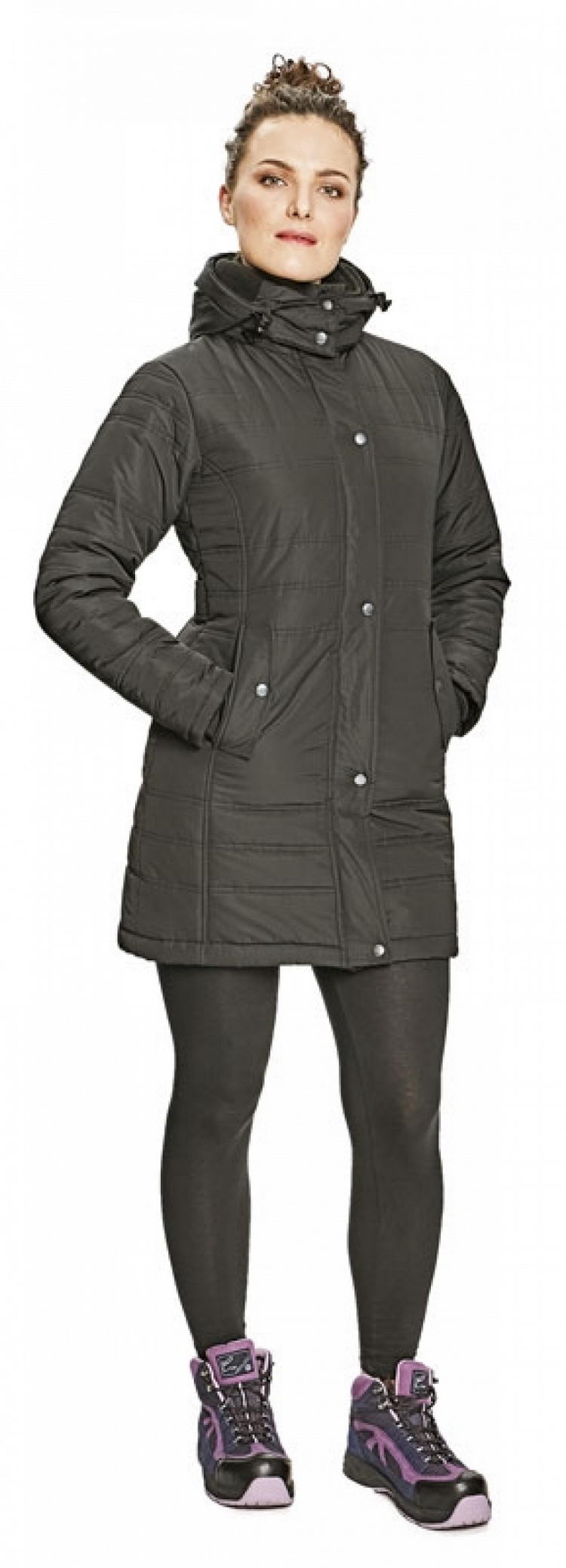 dámská zateplená parka v prodloužené délce, se stojáčkem a odnímatelnou kapucí • zapínání na zip krytý légou na druky • 2 postranní kapsy s ozdobnou patkou s drukem, vnitřmí kapsa na mobil se zapínáním na suchý zip • nastavitelná šířka obvodu pasu prostřednictvím stahovacího pásku na druky • odnímatelná kapuce na zip s nastavitelným obvodem • vnitřní rukávová manžeta z elastického materiálu s otvorem na palec