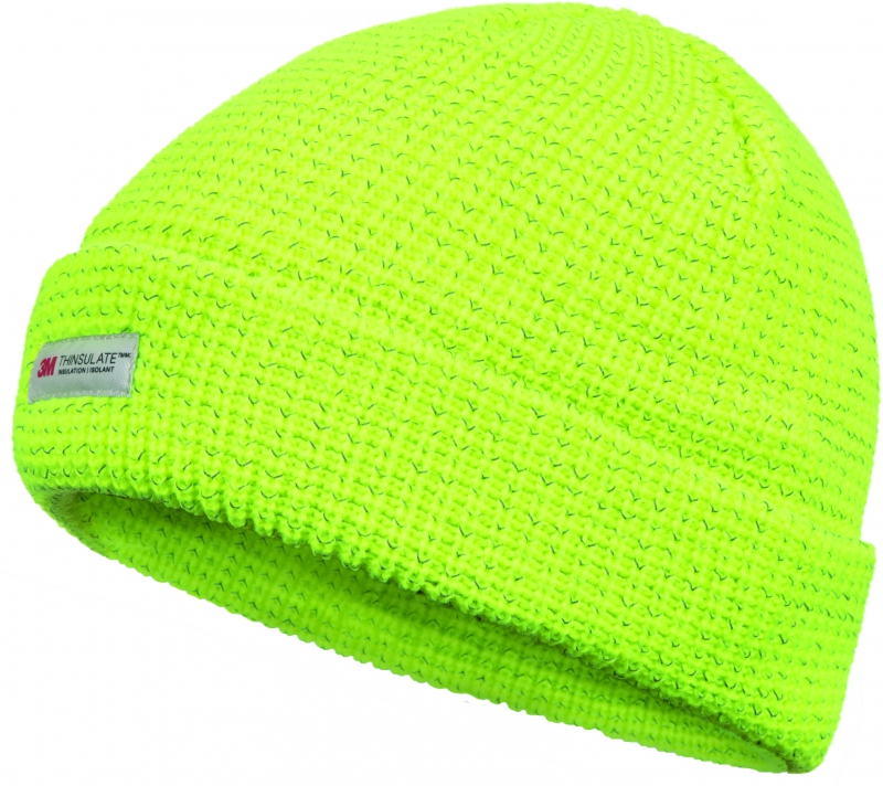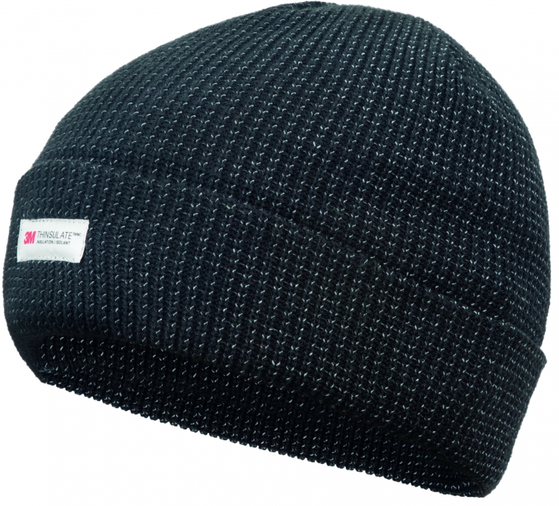 zimní pletená čepice s lemem; vnitřek polyester fleece 3M; vetkané reflexní vlákno.