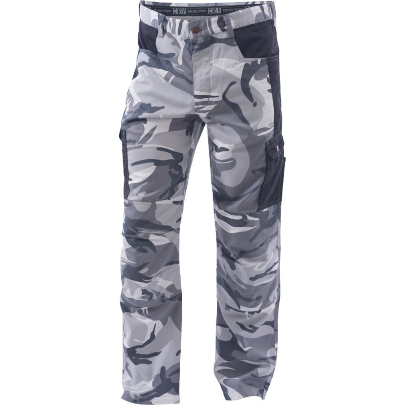 pánské kalhoty z lehkého twillu v modních maskáčových barevných kombinacích; 6 funkčních kapes; zesílená část kolen.