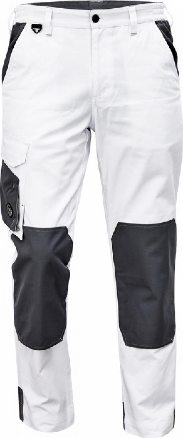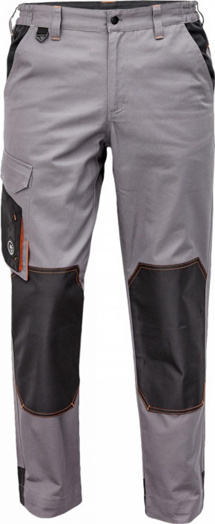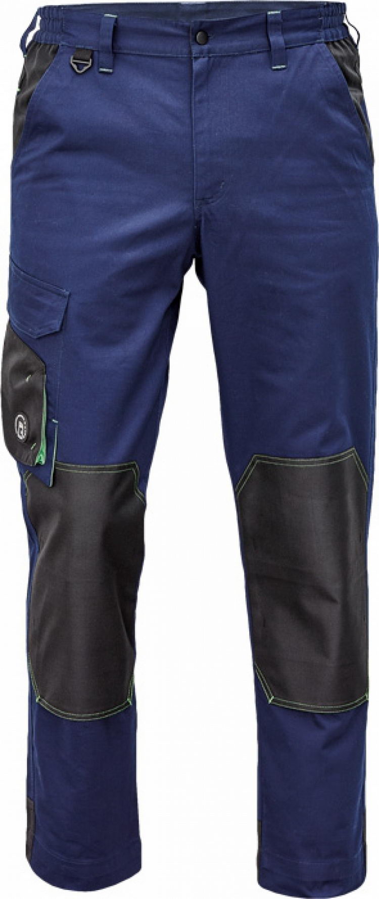 pánské pracovní kalhoty; materiál s vysokým procentem bavlněného podílu; moderní střih; zesílená oblast kolen materiálem Oxord s možností vkládání kolenních výztuh ; 2 postranní kapsy; 1 multifunkční kapsa na nohavici; 1 zadní kapsa se zapínáním na suchý zip; elastický pas; "D" kroužek; kontrastní paspulky; nastavitelná délka nohavic