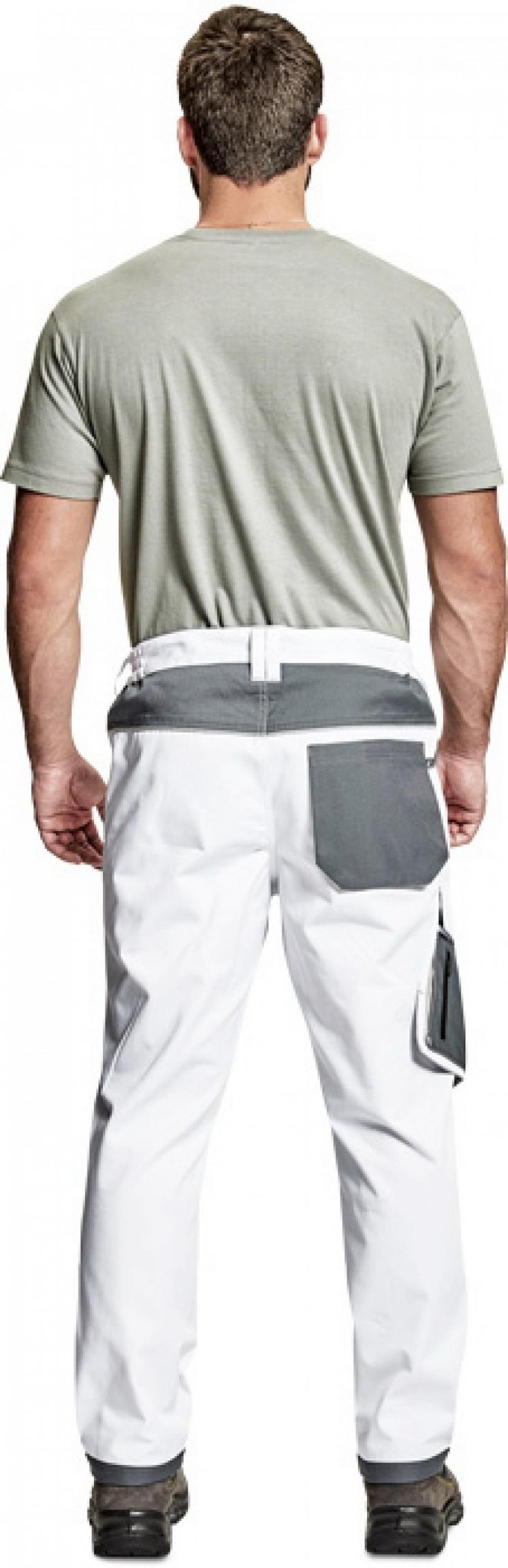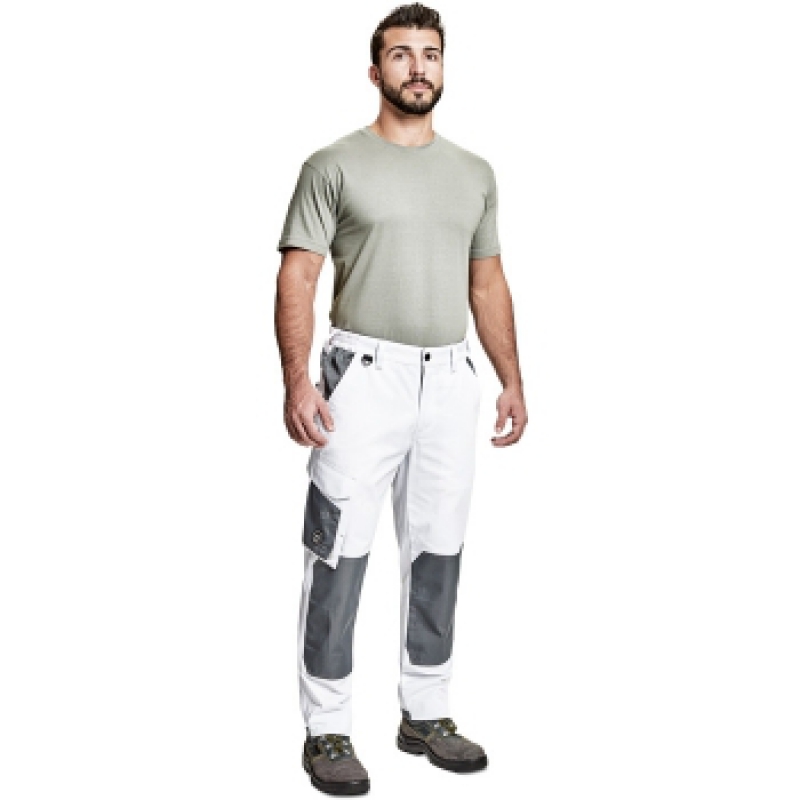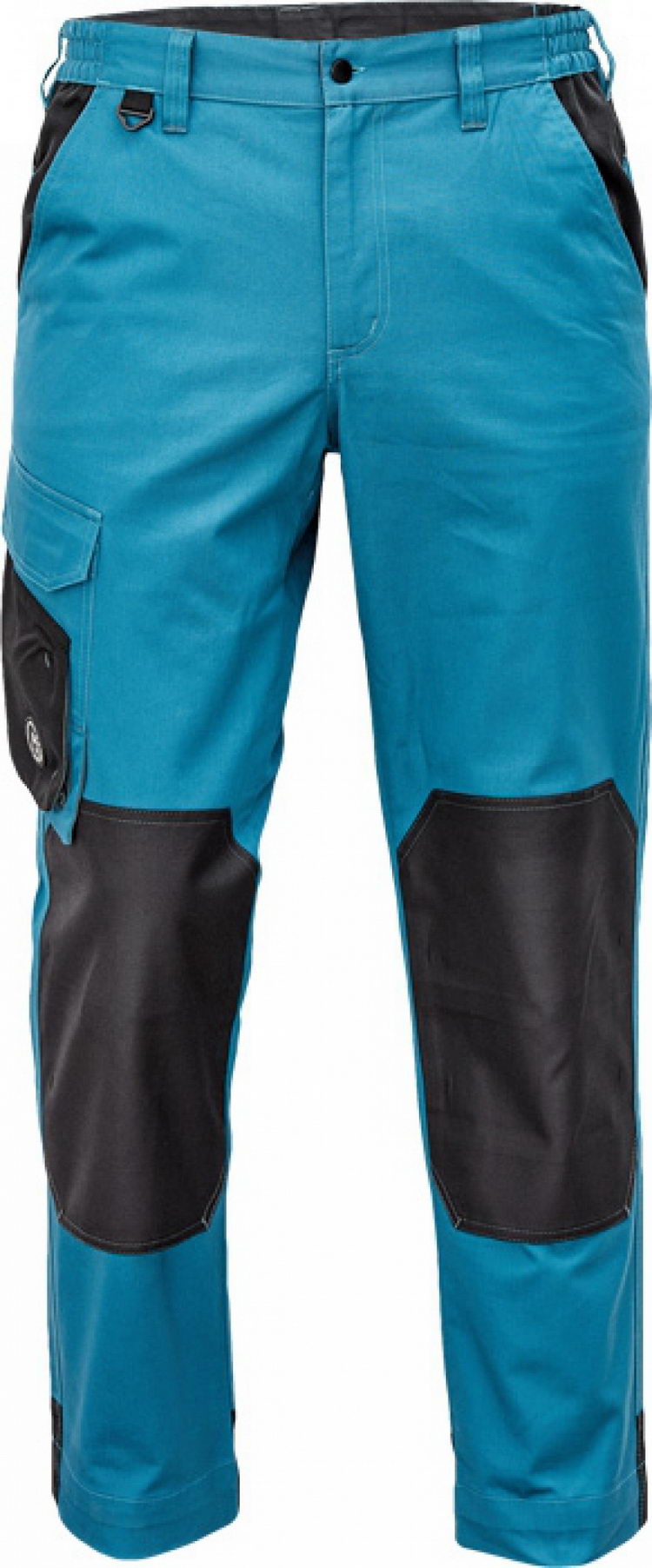 pánské pracovní kalhoty; materiál s vysokým procentem bavlněného podílu; moderní střih; zesílená oblast kolen materiálem Oxord s možností vkládání kolenních výztuh ; 2 postranní kapsy; 1 multifunkční kapsa na nohavici; 1 zadní kapsa se zapínáním na suchý zip; elastický pas; "D" kroužek; kontrastní paspulky; nastavitelná délka nohavic