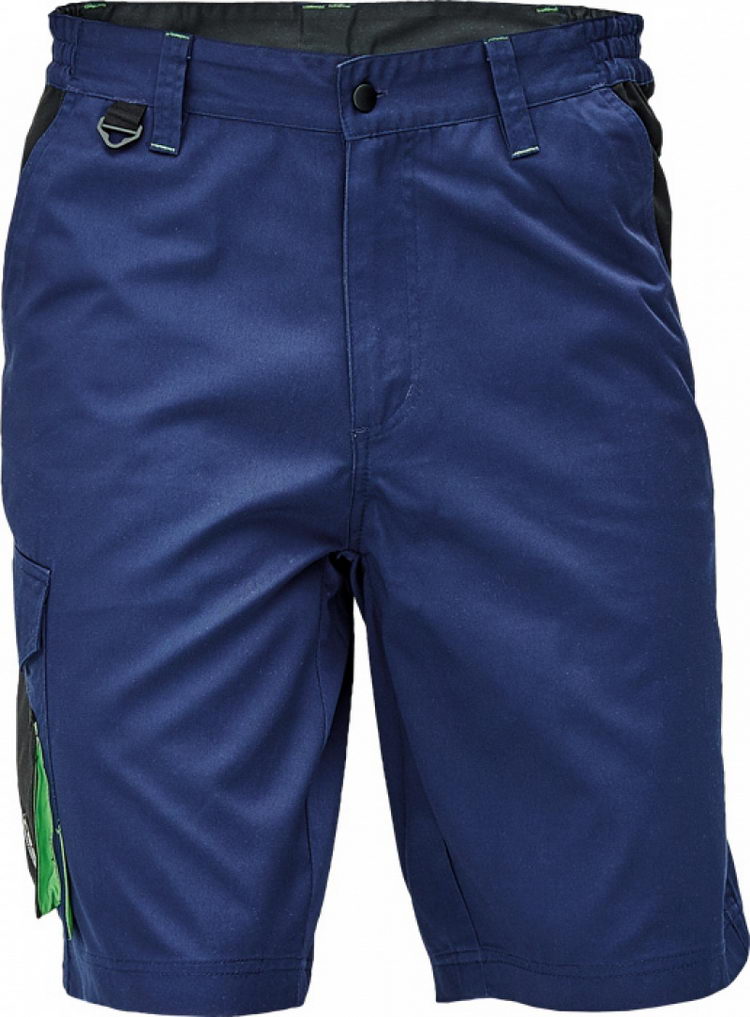 pánské pracovní šortky; materiál s vysokým procentem bavlněného podílu; moderní střih; postranní kapsy; 1 multifunkční kapsa na nohavici; 1 zadní kapsa se zapínáním na suchý zip; elastický pas; "D" kroužek; kontrastní paspulky