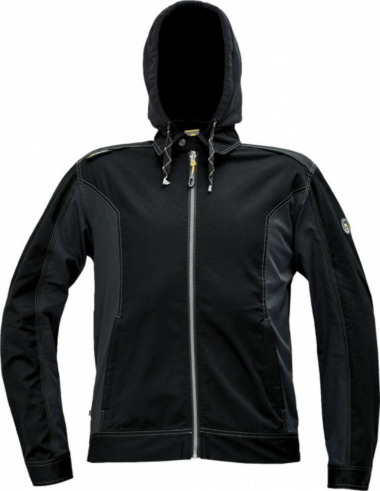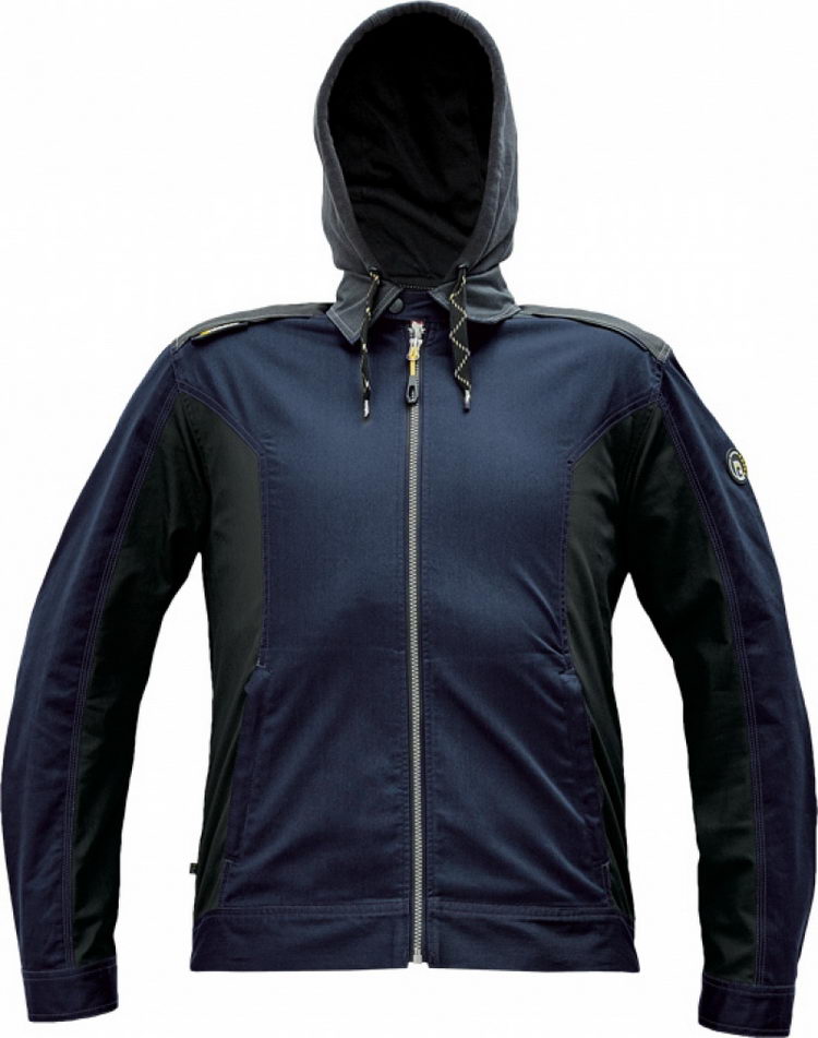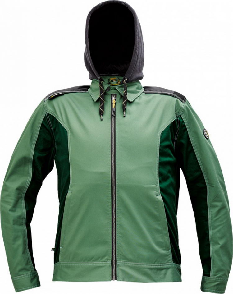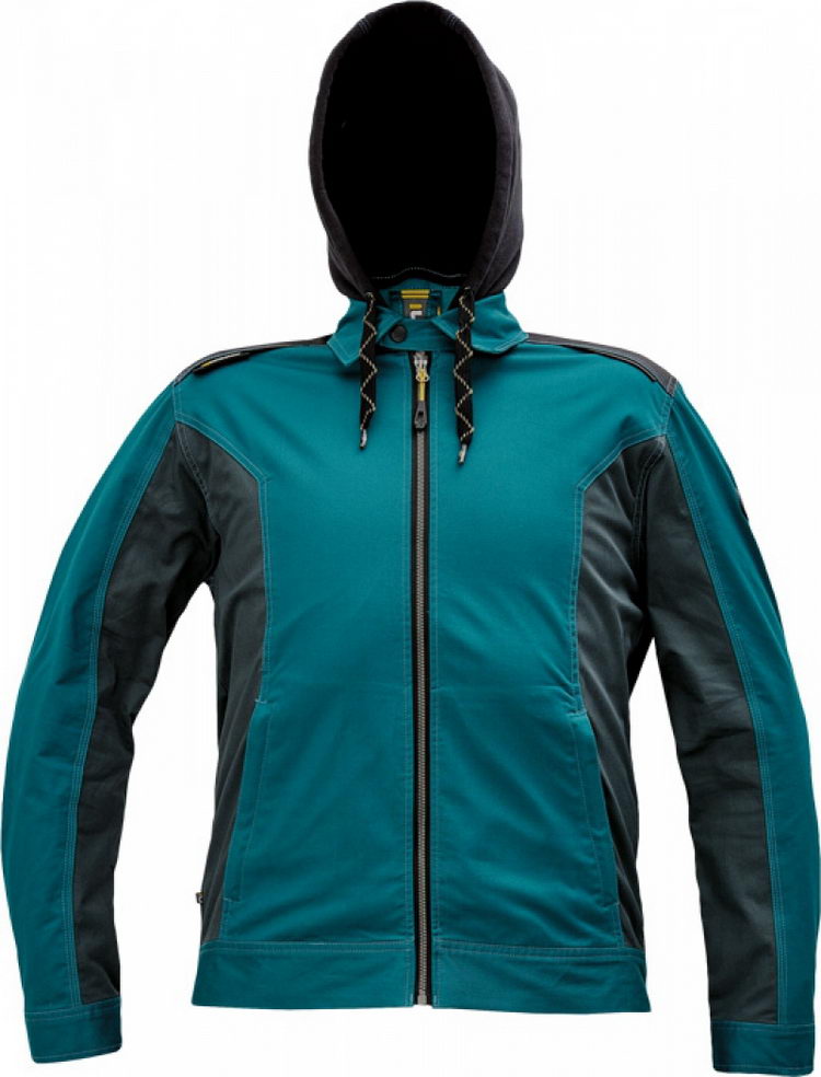 pánská pracovní bunda; elastický inovativní materiál TRIFIBETEX; ergonomický střih; odnímatelná kapuce; zesílená oblast ramen z materiálu Oxford; 2 postranní kapsy; 1 vnitřní kapsa na telefon; reflektivní prvky v barevném odstínu