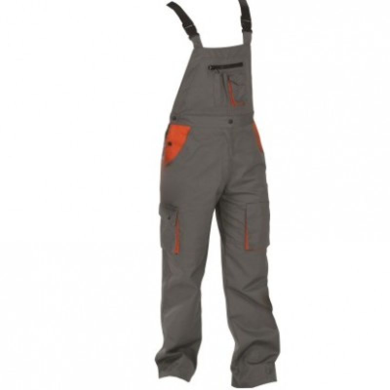 Monterkové kalhoty s laclem zateplené flanelem, polyester/bavlna (65/35), 235 g/m2, kombinace šedá/oranžová, velikost 48, 50, 52, 54, 56, 58, 60, 62.