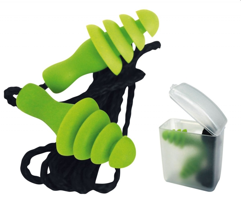 Ochrana sluchu - tvarované omyvatelné zátkové chrániče sluchu spojené lankem, se zaváděcí rukojetí a čtyřmi velmi jemnými lamelami velmi příjmenými k pokožce a vhodnými pro téměř každou velikost zvukovodu, s vysokým útlumem SNR 30 dB, včetně čirého pouzdra k uložení s možností připevnění na opasek. EN 352-2.
