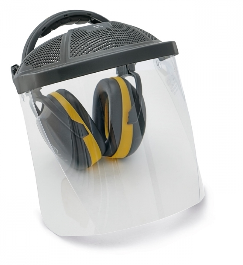 Kombinace náhlavního systému Hellberg s čirým polykarbonátovým obličejovým štítem a sluchátky ED 2H Ear Defender. Maximální komfort a ochrana pro uživatele, kteří nepotřebují zároveň ochranu hlavy. Sluchátka splňují normu EN 352-1: 2002.