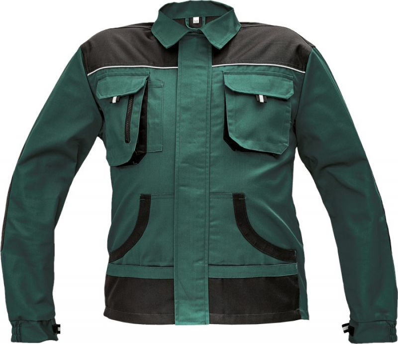 Bunda s multifunkčními kapsami, zesílením na loktech.