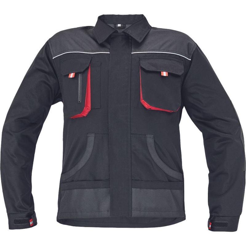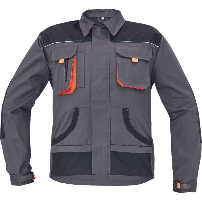pánská bavlněná pracovní bunda; zapínaní na zip kryté légou; 2 náprsní kapsy s klopou na suchý zip; 2 multifunkční postranní kapsy v pase; polyester Oxford zesílení v loketních částech a ramenou.