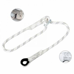 LB 10 – univerzální bezpečnostní lano se seřizovačem (PA lano splétané, průměr 12 mm), šité oko s očnicí na jednom konci lana - 1,5 m s ocelovou karabinou s pojistkou – EN 362, EN 354, EN 358 – CE 0082.