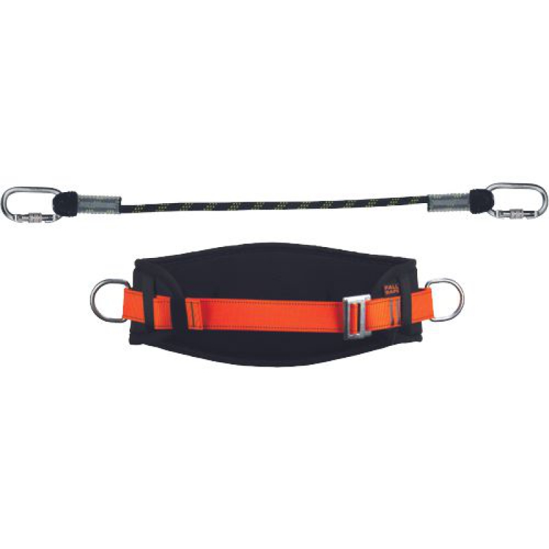 Set Fall safe FS 155 Basic polohovací pás se dvěm bočními připojovacími kovovými body, seřízení velikosti pomocí spony. Polyesterový popruh univerzální velikost váha 0,46kg EN358 Polohovací lanyard FS082 1,5m po