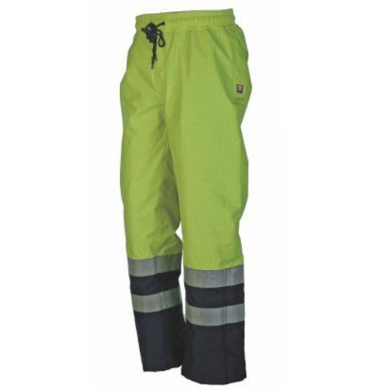 Antistatické, nehořlavé a chemicky odolné kalhoty s pevnou bavlněnou nehořlavou podšívkou a přelepenými švy.