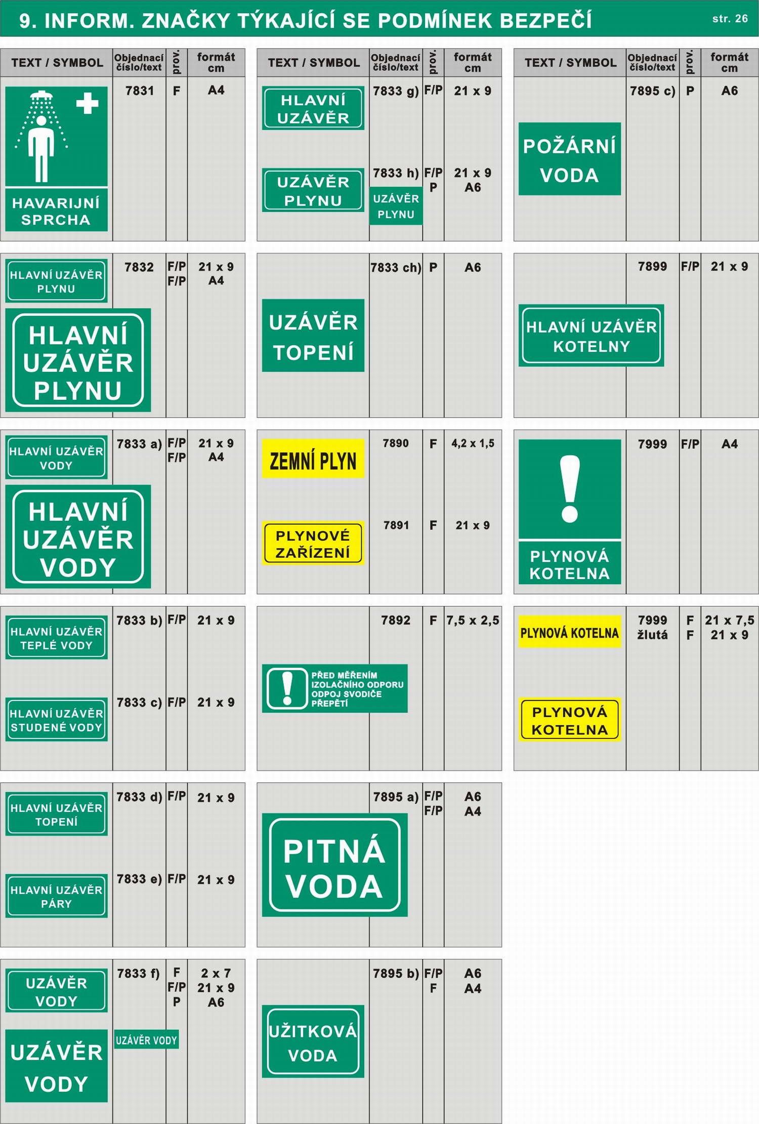 | Název zboží | Informační značky týkající se podmínek nebezpečí |