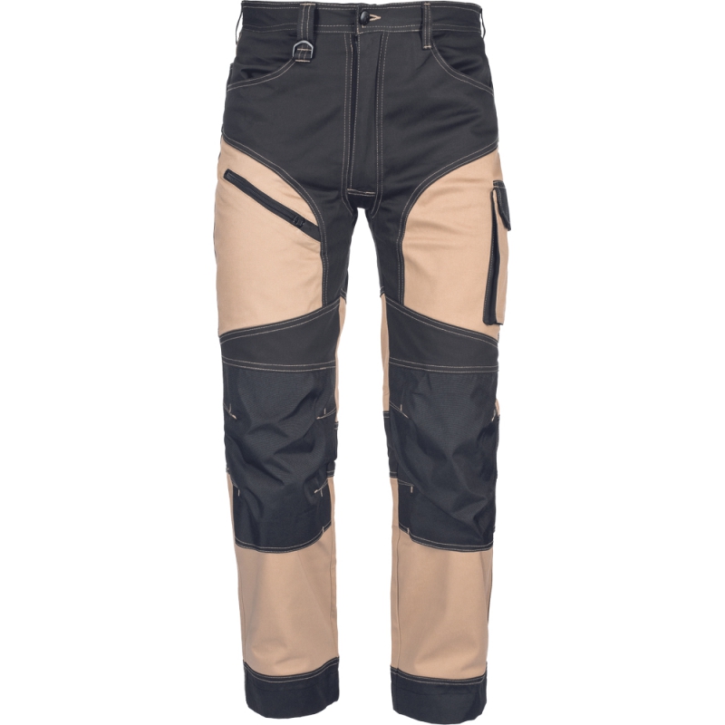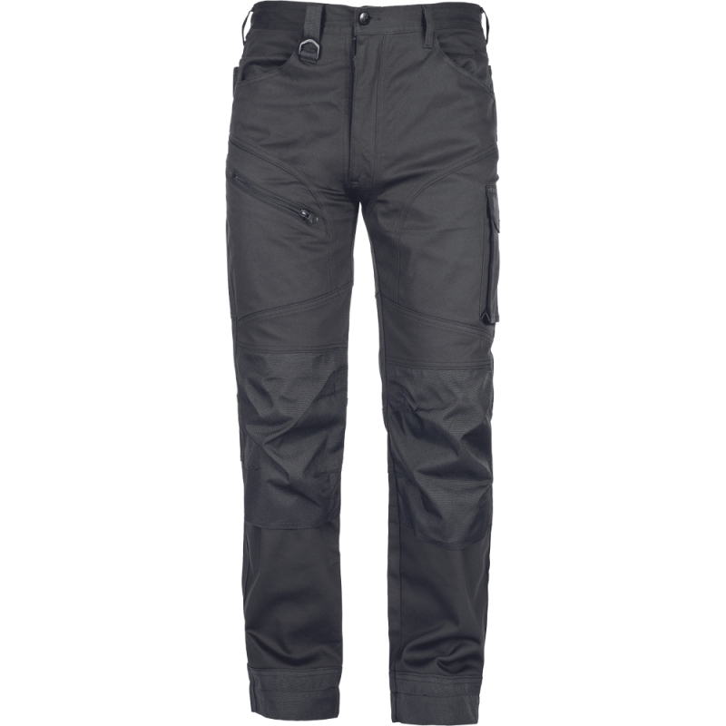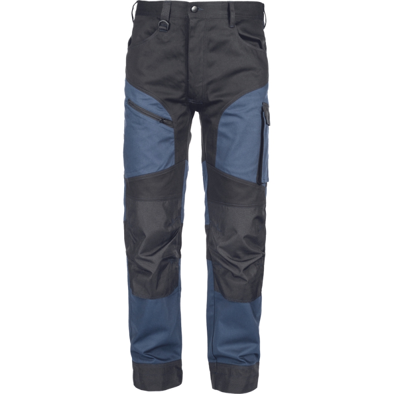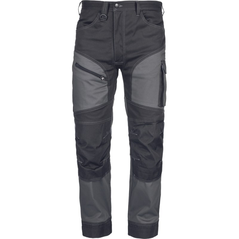 • kvalitní pánské pracovní kalhoty z elastického materiálu • 2 postranní kapsy • 2 zadní kapsy s klopami na suchý zip • 2 stehenní kapsy • zesílená oblast kolen s možností vkládání nákoleníků • záložka na nohavici umožňující prodloužení délky až o 5 cm • dekorativní prošití