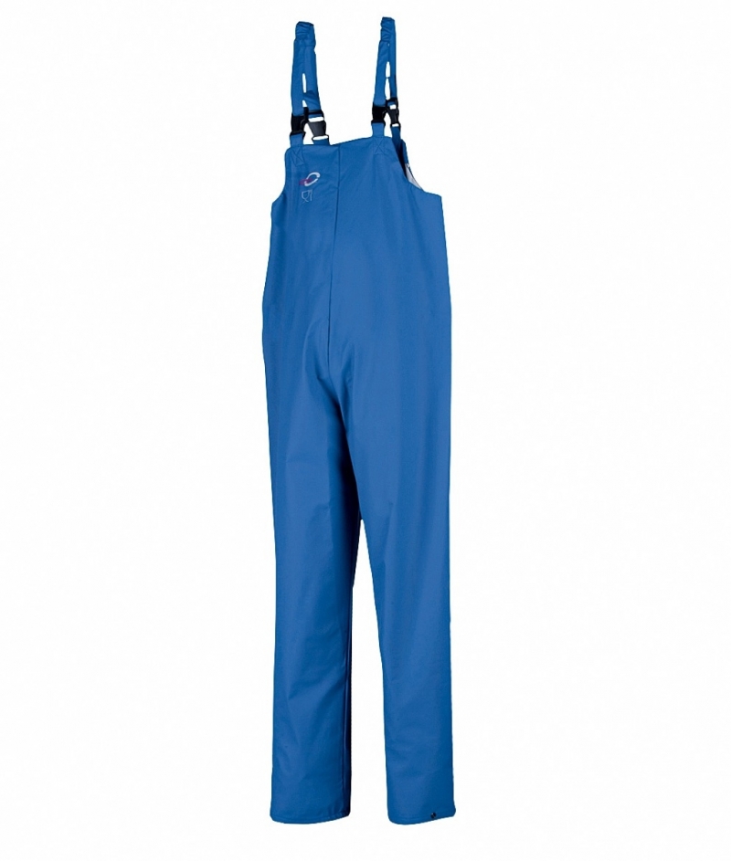 oboustranné kalhoty s laclem pratelné až na 95 °C • elastické šle s přezkami, nohavice nastavitelné druky • 100 % vodě a větruodolné, lehké, nešustivé • zatavené švy