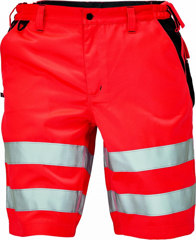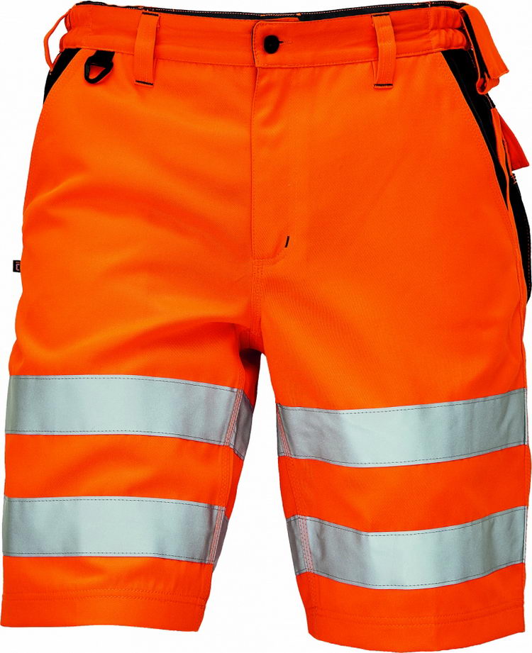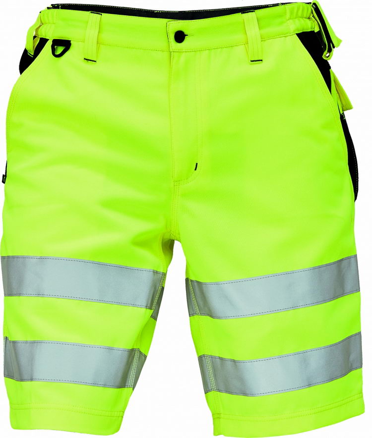 • pánské pracovní krťasy v hi-vis provedení s elastickám pasem • 2 postranní kapsy a 2 kapsy s patkou na zadním díle • poutko na nářadí v kontrastní barvě • D kroužek pro přichycení identifikačníkarty • dekorativní prošití