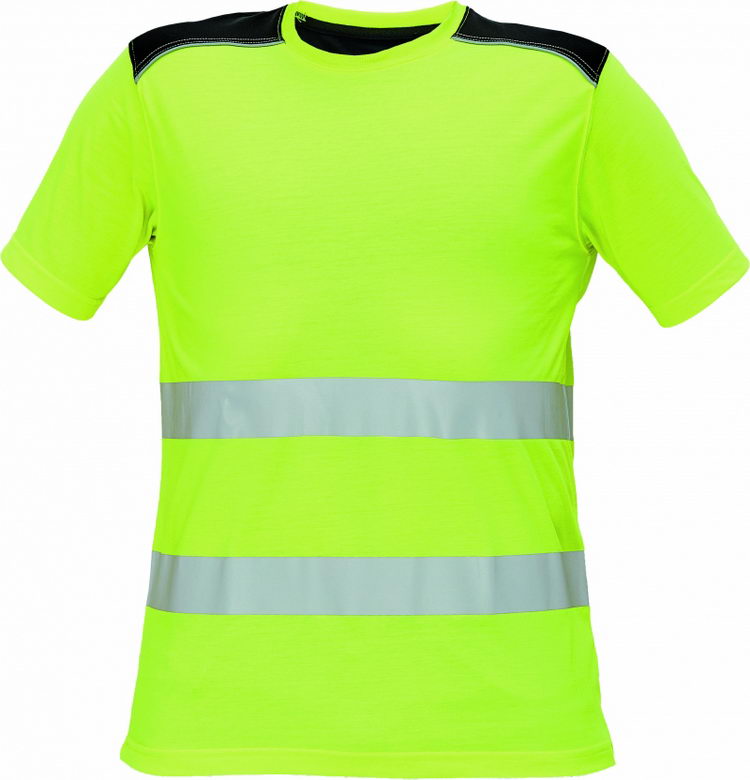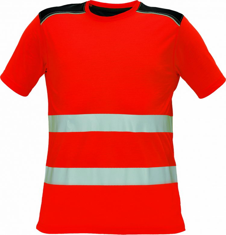 • pánské tričko z lehkého polyesterového úpletu • sedlo v kontrastní černé barvě lemované reflexní paspulkou • 2 reflexní pruhy na obvodu těla • dekorativní prošití
