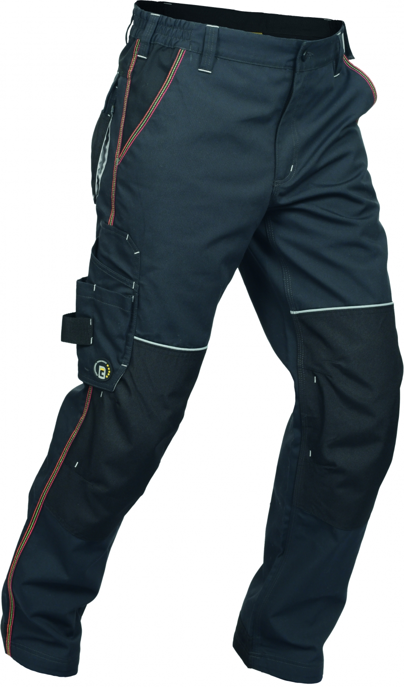 • pánské pracovní klahoty s elastickým pasem • 2 postranními kapsami • 1 multifunkční kapsou na nohavici • D kroužek pro přichycení identifikační karty • 2 nakládané zadní kapsy s patkou • poutko na nářadí v kontrastní barvě • zesílená oblast kolen s možností vkládání kolenních výztuh • záložka na nohavici umožňující prodloužení délky až o 5cm • zesílená zadní strana spodku nohavice • dekorativní prošití a kontrastní prvky v hi-vis barvě