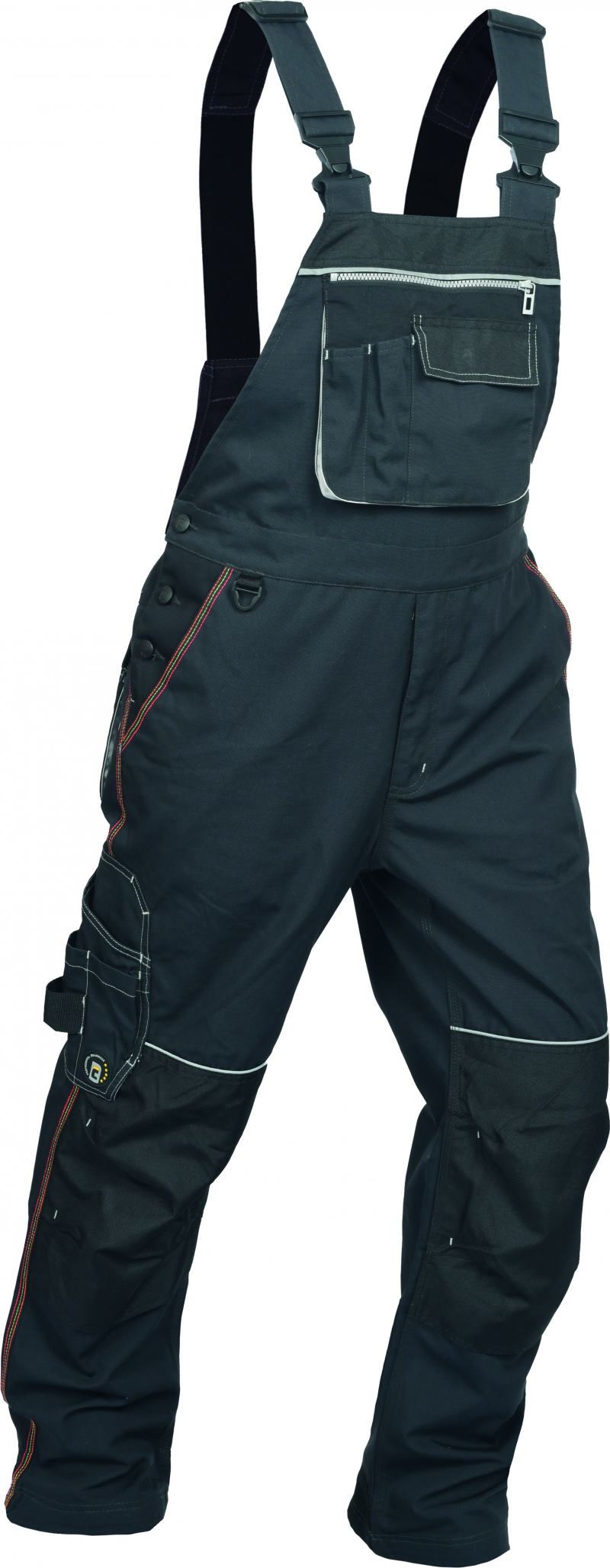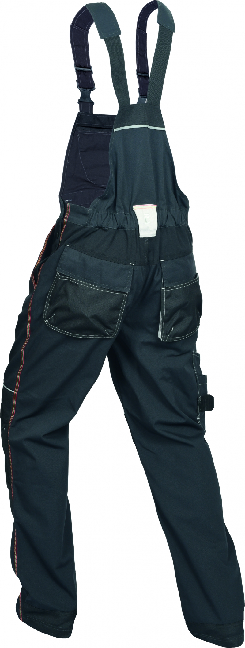 • pánské pracovní kalhoty s laclem • elastické šle a pas • 2 hluboké postranní kapsy • 1 multifunkční kapsa na straně nohavice • 1 nakládaná multifunkční náprsní kapsa na laclu • D koužek pro přichycení identifikační karty • 2 nakládané zadní kapsy s patkou • zesílená oblast kolen s možností vkládání kolenních výztuh • záložka na nohavici umožňující prodloužení délky až o 5 cm • zesílená zadní strana spodku nohavice • dekorativní prošití a kontrastní prvky v hi-vis barvě