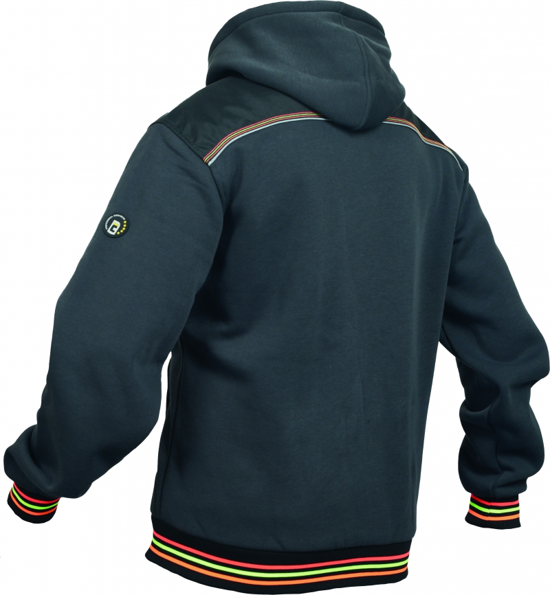 • pánská celopropínací mikina s kapucí ze směsového úpletu bavlny a polyesteru ze vnitř nepočesaná • zesílená oblast ramen a loktů • reflektivní paspulka lemující sedlo a lištové kapsy • dvojitá kapuce s kontrastním hi-vis úpletem v barvě zipu a dekorativního prošití • pružné náplety na rukávech a spodním obvodu