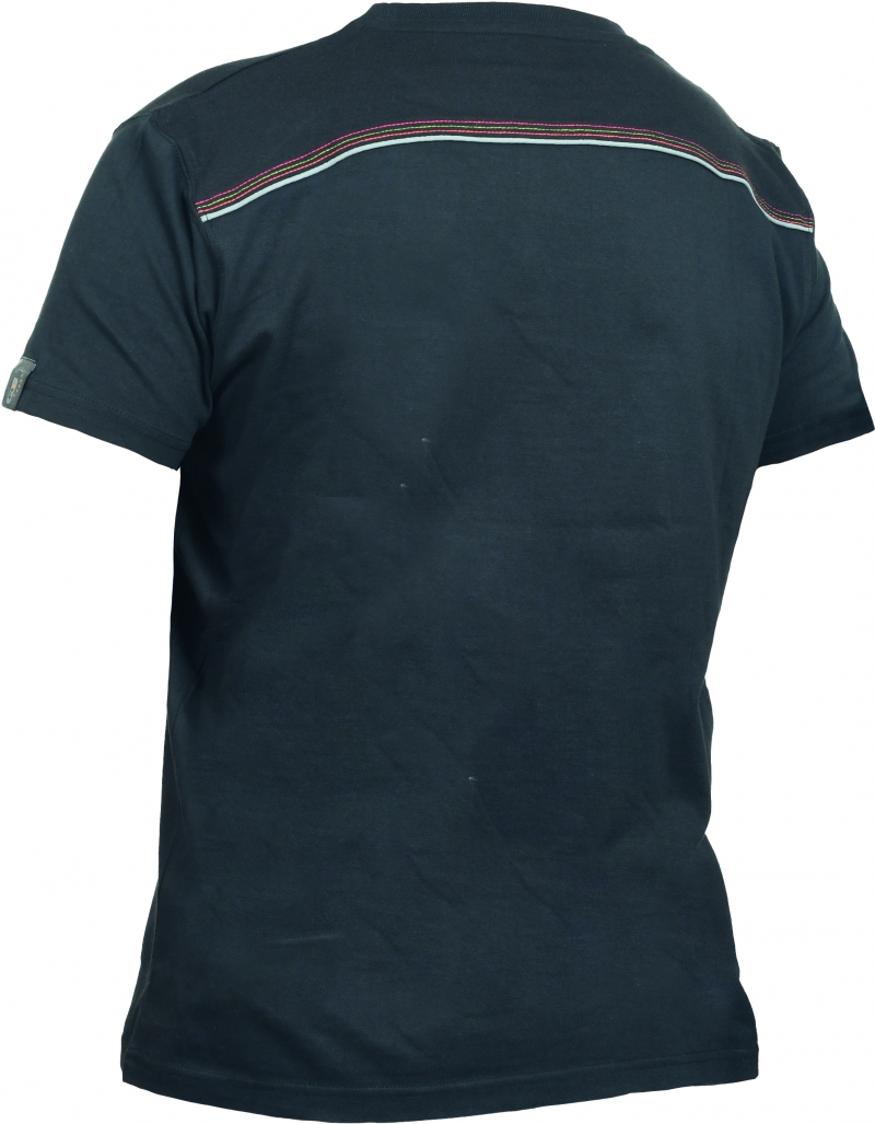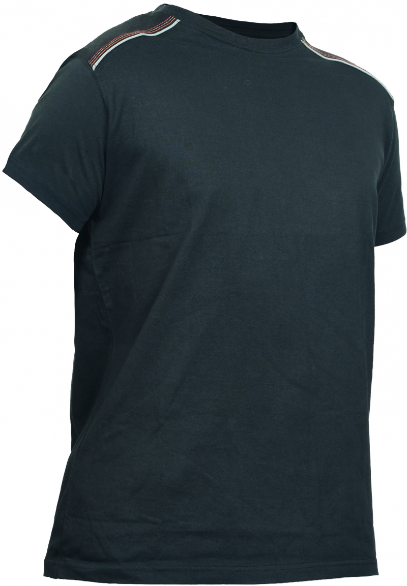 • pánské tričko z bavlněného úpletu • sedlo v kontrastní černé barvě lemované reflexní paspulkou • dekorativní prošití v hi-vis barvách