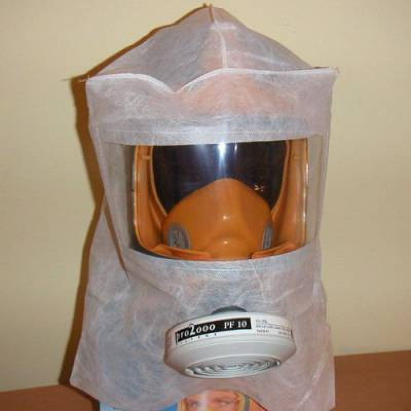 Kukla z netkané textilie chránící před částicemi prachu a rozstřikem kapalin.