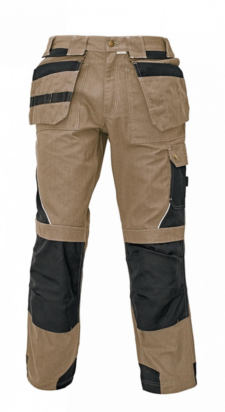 pánské pracovní kalhoty do pasu, s odnímatelnými multifunkčními kapsami na předním díle • prostorné kapsy na možnost vkládání odnímatelných kapes • široká pasová poutka • postranní kapsa s poutkem na nářadí • velké nakládané kapsy s klopou na suchý zip na zadním díle • nákolenní kapsy ze zesíleného materiálu Oxford s možností vložení kolenních výztuh • zpevnění švů trojitým prošitím • znásobené prošití v namáhaných místech v kontrastní barvě • upravitelná délka nohavic • dekorativní paspule z reflektivního materiálu