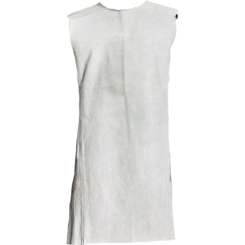 Laclová zástěra s nárameníky pro svářeče vyrobená z šedé štípané hověziny.