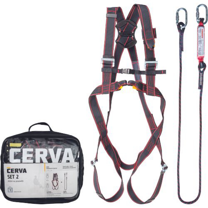 Lanex Set 2 Údržba: Průmysl, plošiny, údržba Postroj základní s předním a zadním kotevním prvkem, tlumič pádu s lanem a oválnými karabinami
