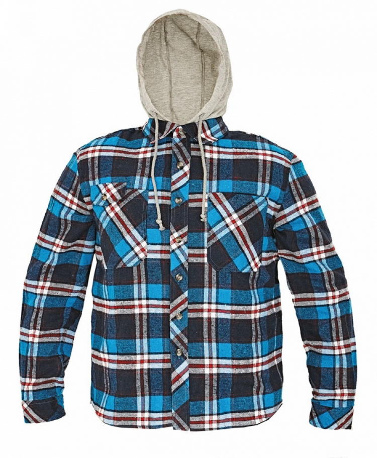 pánská flanelová košile s odepínací kapucí na knoflíky • dekorativní záplaty na loktech v barvě kapuce • léga na knoflíky • 2 náprsní kapsy