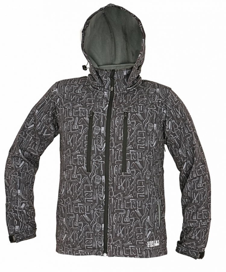 pánská 3 vrstvá celopotištěná softshellová bunda s TPU membránou v atraktivním moderním designu • 2 hluboké náprsní kapsy na zip, 2 postranní kapsy, 3 vnitřní kapsy z toho 1 na zip • odnímatelná kapuce s nastavitelným obvodem pomocí stahovací šňůrky • nastavitelná šířka obvodu rukávů pomocí suchého zipu • nastavitelná šíře spodního obvodu bundy pomocí stahovaní šňůrky
