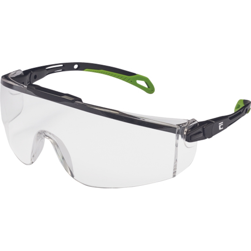 brýle s polykarbonátovým zorníkem třídy 1FT dle normy EN 166; zorník s ochranou proti poškrábání a zamlžení; ochrana proti letícím částicím s nízkou energií; nastavitelný úhel stranic