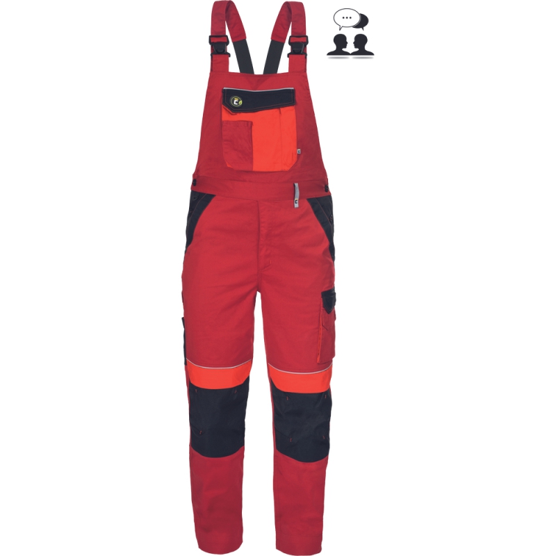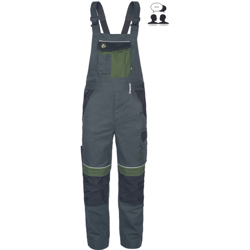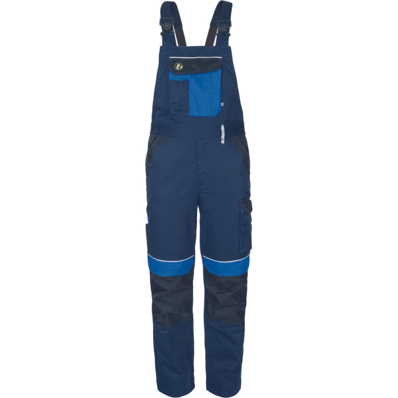 • pánské pracovní laclové kalhoty s elastickým pasem • 2 přední kapsy • 1 stehenní kapsa • 1 velká náprsní kapsa se zapínáním na suchý zip • 2 zadní kapsy se zapínáním na suchý zip • zesílená oblast kolen s možností vložení chráničů kolen • reflexní prvky • nastavitelná délka nohavic