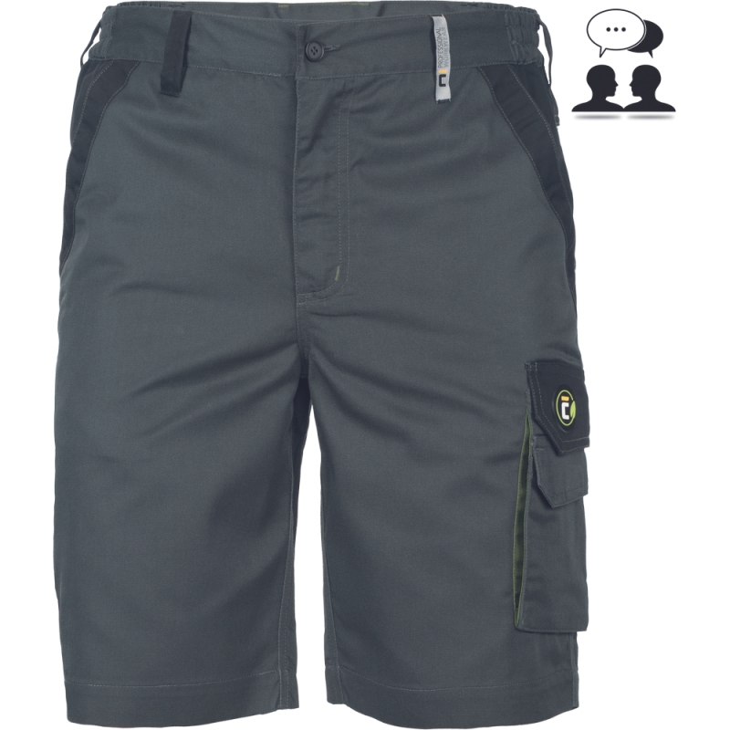 • pánské pracovní šortky s elastickým pasem • 2 přední kapsy • 2 stehenní kapsy • 2 zadní kapsy se zapínáním na suchý zip • reflexní prvky