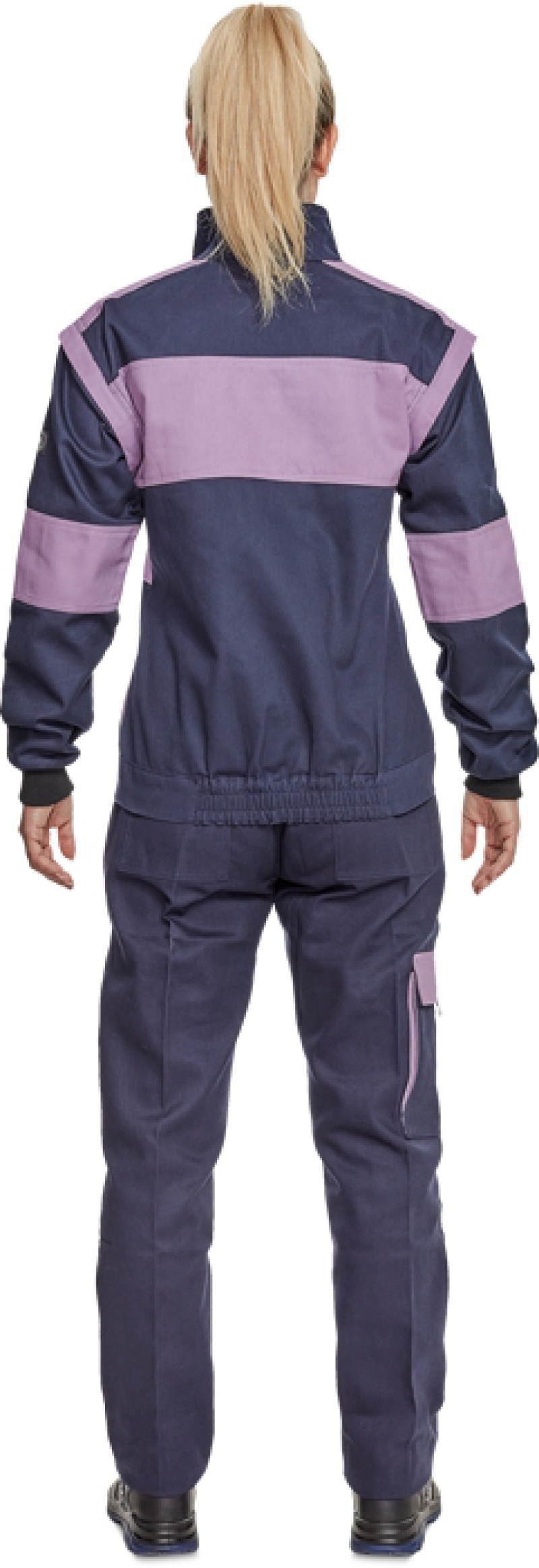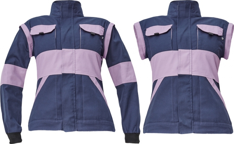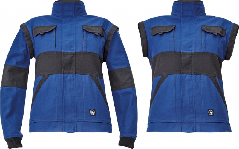 dámská pracovní bunda se zapínáním na zip krytým légou; odepínatelné rukávy; 2 přední kapsy, 2 náprsní kapsy; zesílení namáhaných míst loktů a ramen; pružné manžety rukávů a spodní obvod v pase.