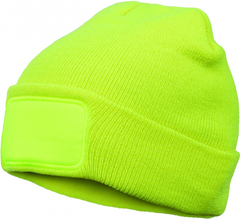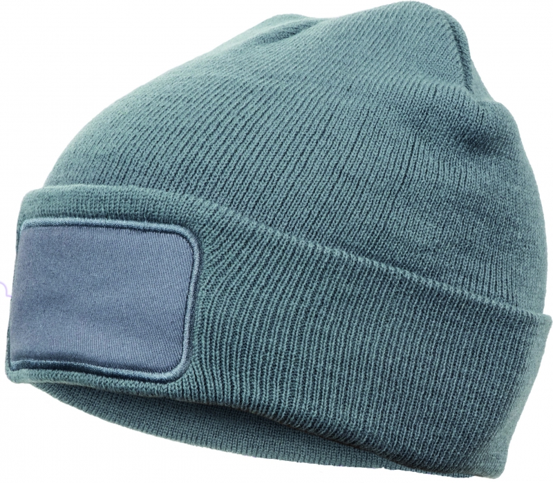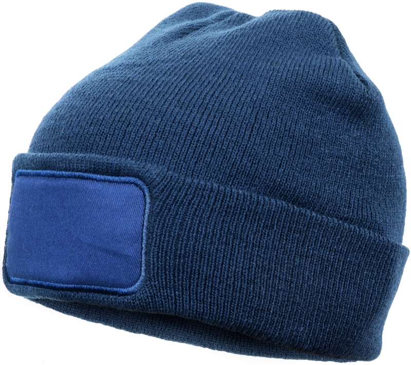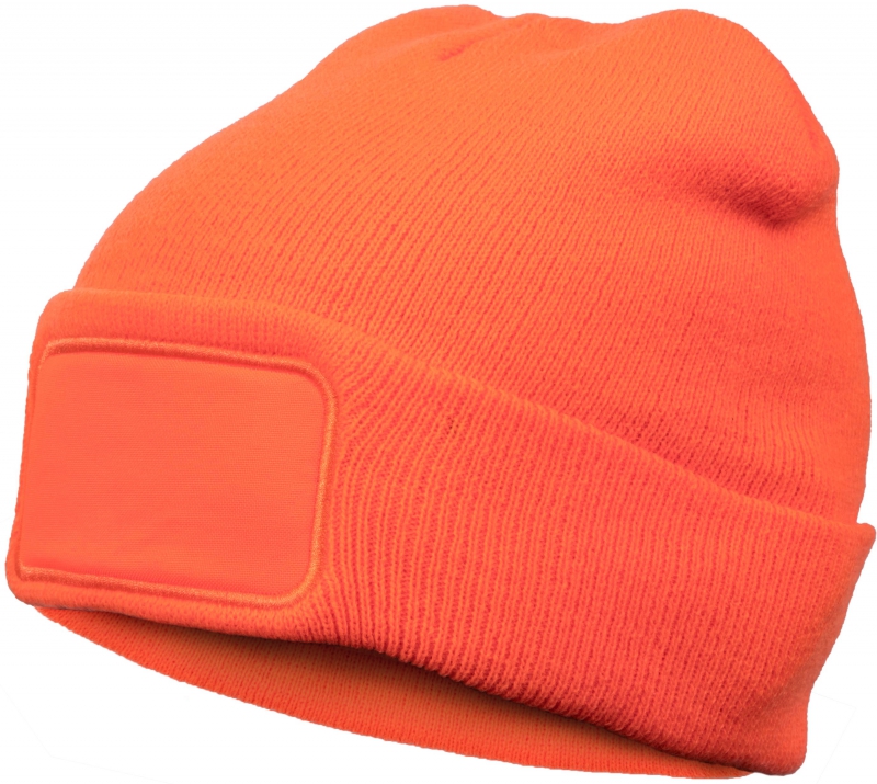 pletená zimní čepice s čelním štítkem pro výšivku nebo potisk.