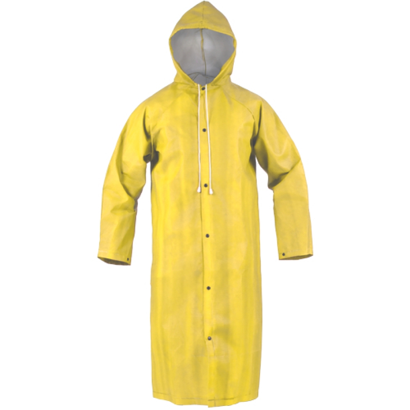 nepromokavý plášť s kapucí a se zapínáním na druky; obvod kapuce je možné upravit pomocí tkanice; ventilace v podpaží; manžety rukávů se zapínáním na druky; zatavené švy; 100% recyklovatelný oděv.